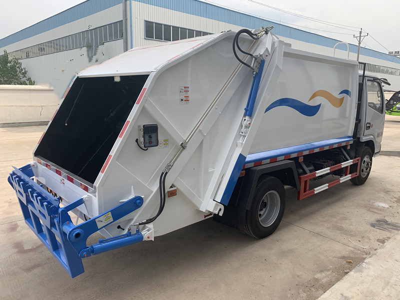 上裝配置:新款平面弧形廂體,廂體材料為武鋼優(yōu)質(zhì)碳鋼邊3底4mm厚,有效壓縮容積5-6立方,9支液壓油缸制動,PLC一鍵操作控制,手電一體操作模式,兩側(cè)雙電控,帶駕駛室內(nèi)操作,底板支撐加強,雙向壓縮,開放式易清潔污水箱。壓縮式垃圾車采用機電液一體化技術(shù),借助機、電、液聯(lián)合自動控制系統(tǒng)、電腦控制、手動操作系統(tǒng),通過填裝器和推鏟等專用裝置,實現(xiàn)垃圾倒入、壓碎或壓扁、強力裝填,把垃圾擠入車廂并壓實和推卸,污水全部進入污水廂,解決了垃圾運輸過程中的二次污染的問題。壓縮式垃圾車具有自動反復(fù)壓縮以及蠕動壓縮功能,壓縮比高、密封性好、裝載量大﹑操作方便、環(huán)保性好﹑整車?yán)霉β矢叩葍?yōu)點。作業(yè)自動化,垃圾收集方式簡便、高效。后翻轉(zhuǎn)機構(gòu)選裝:1、掛塑料桶式翻轉(zhuǎn)機構(gòu);2、掛鐵桶式翻轉(zhuǎn)機構(gòu),可掛標(biāo)準(zhǔn)塑料桶240/660升;3、擺臂式翻轉(zhuǎn)機構(gòu); 4、簸箕斗式翻轉(zhuǎn)機構(gòu)。